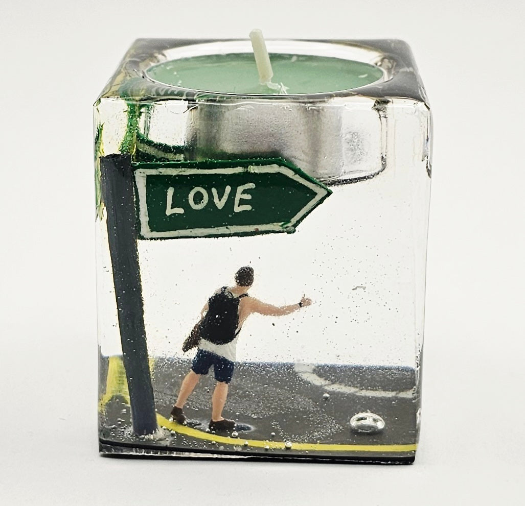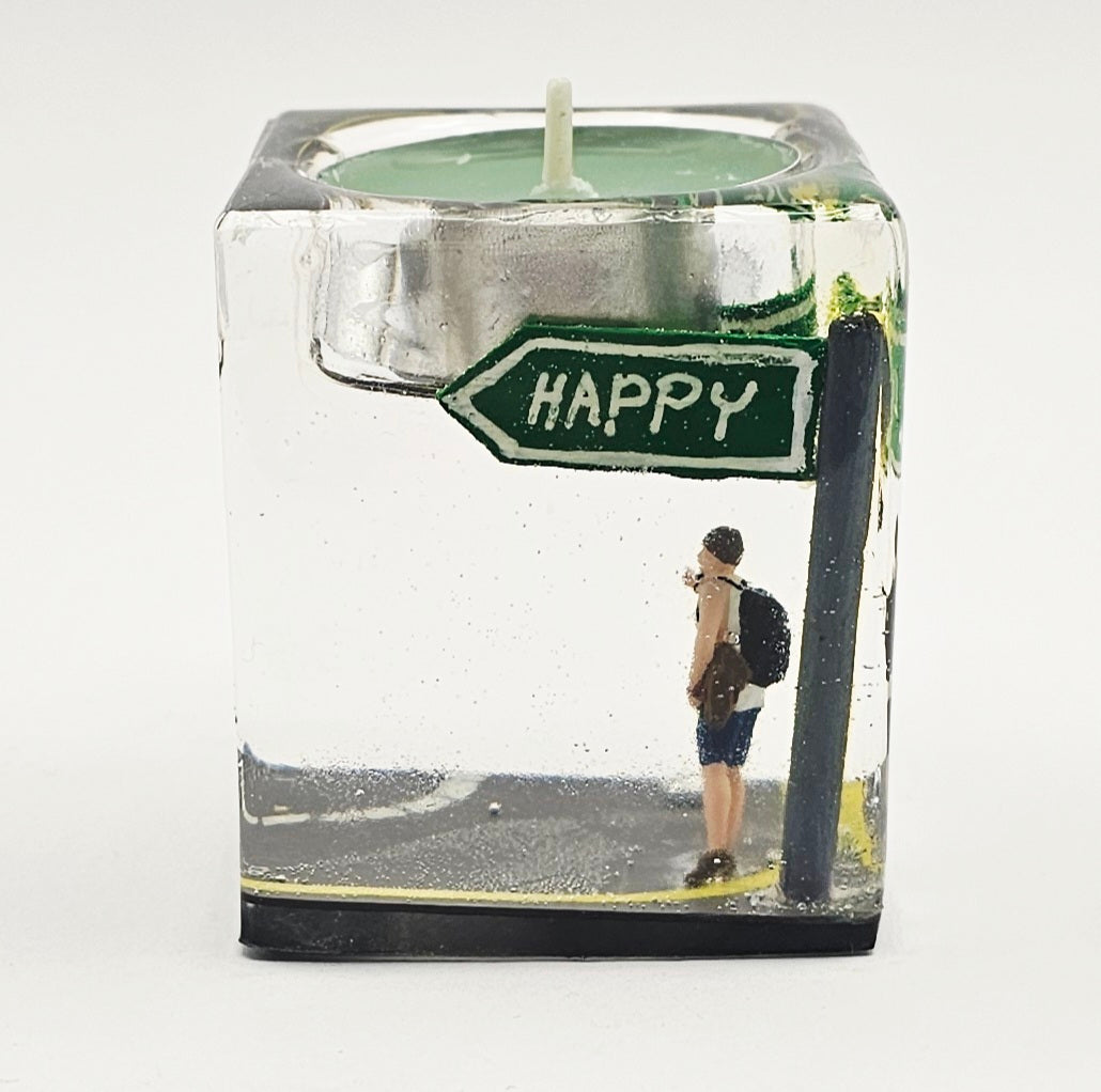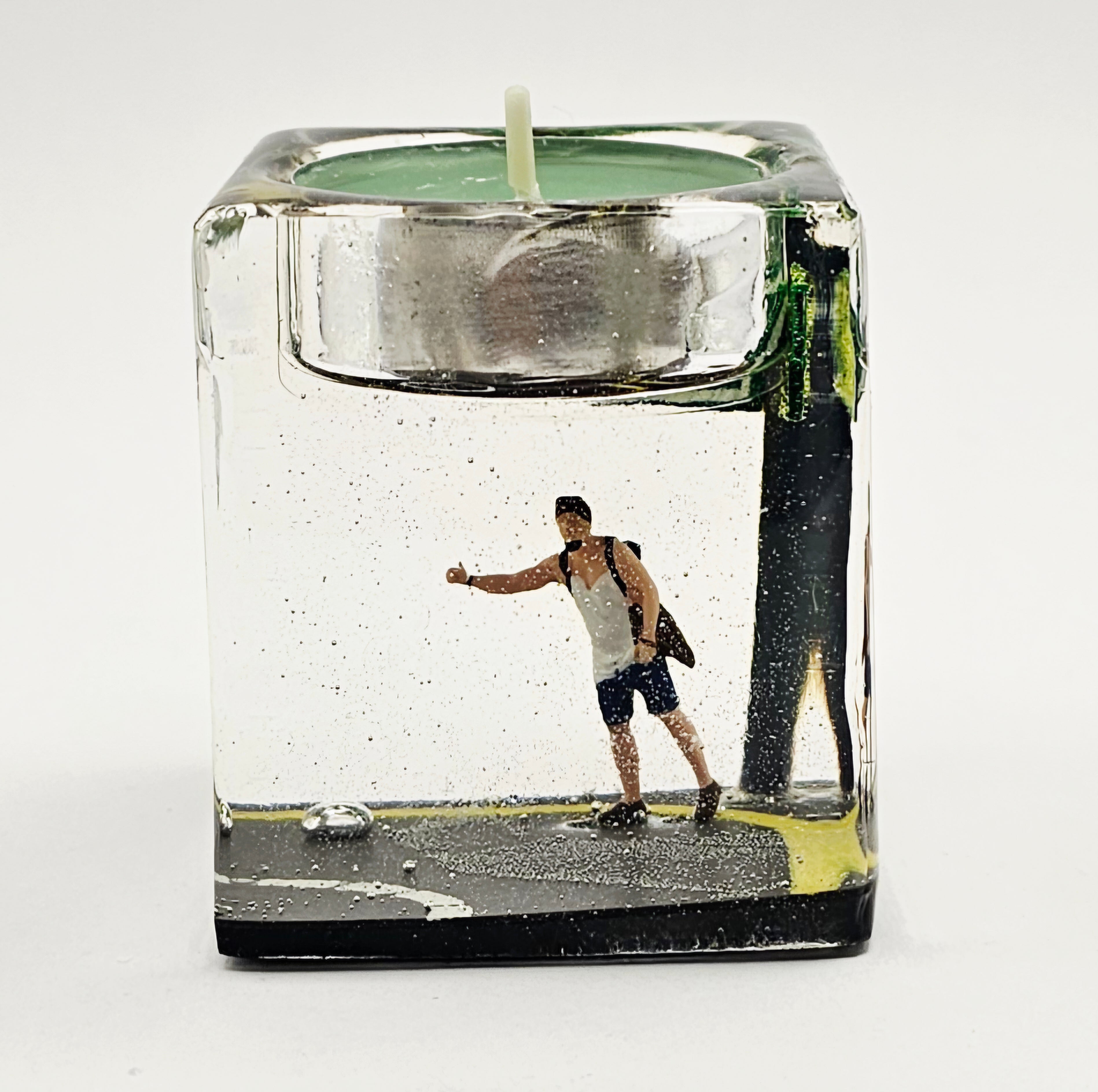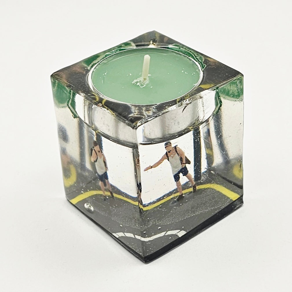 פמוט "רגע לנצח" לוכד סצנה על-זמנית. כל אלמנט נוצר בעבודת יד בתוך אפוקסי רזין שקוף המשמר עולם מיניאטורי מלא יופי, רגש ורוגע.