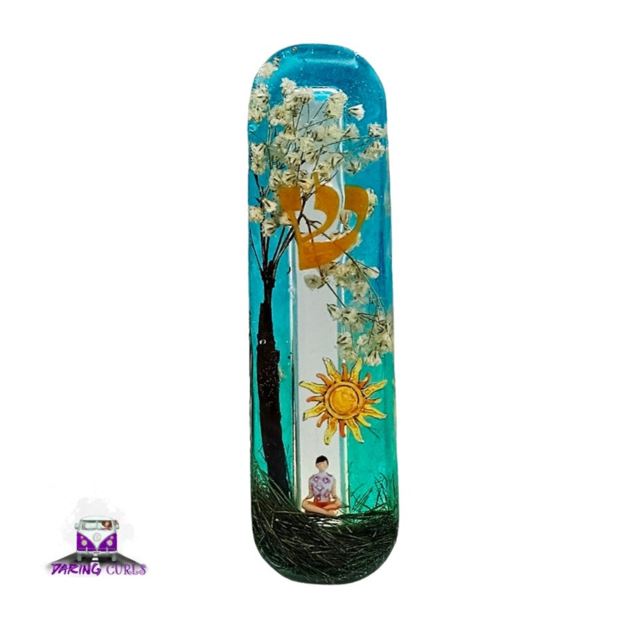 המזוזות שלנו עשויות משרף איכותי, ומעוצבות בקפידה על ידי אמנית ישראלית, תוך שילוב של צבע, עומק ורגש. הן מתאימות לקלף כשר ומיועדות לתלייה בבית, בכניסה, או כמתנה מושלמת לחתונה, לבית חדש או לאירוע מיוחד.