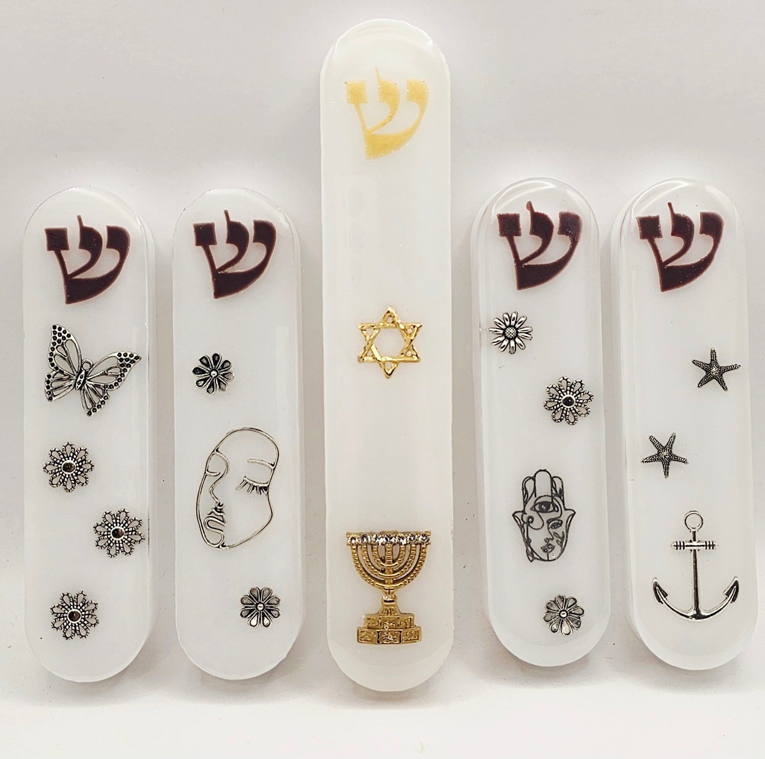המזוזות שלנו עשויות משרף איכותי, ומעוצבות בקפידה על ידי אמנית ישראלית, תוך שילוב של צבע, עומק ורגש. הן מתאימות לקלף כשר ומיועדות לתלייה בבית, בכניסה, או כמתנה מושלמת לחתונה, לבית חדש או לאירוע מיוחד.